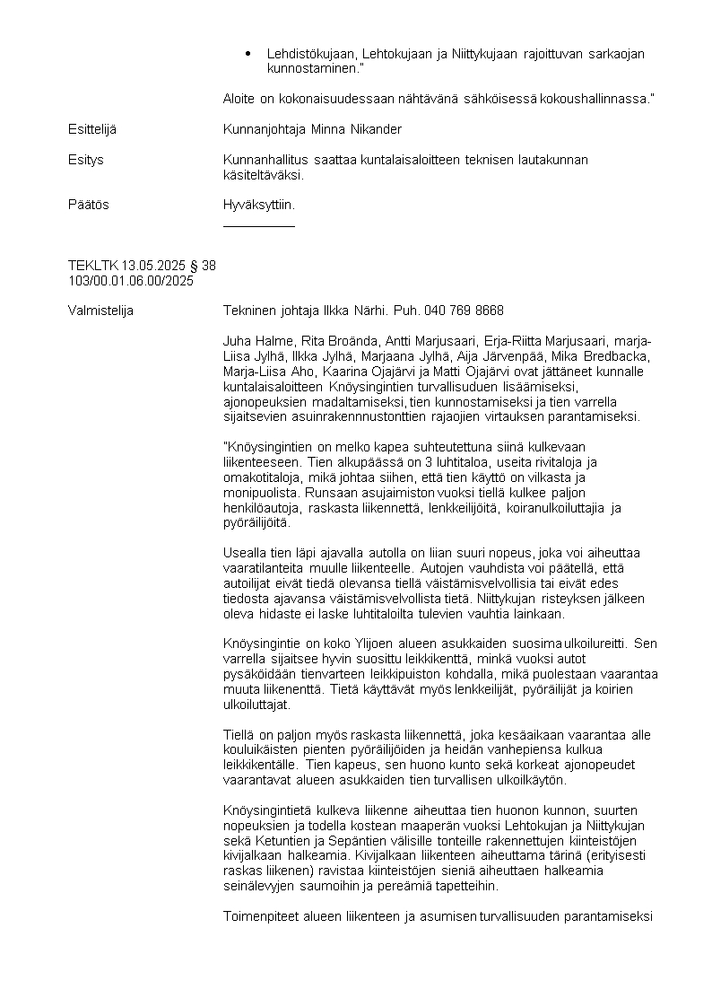 Pöytäkirja 13.05.2025/Pykälä 38