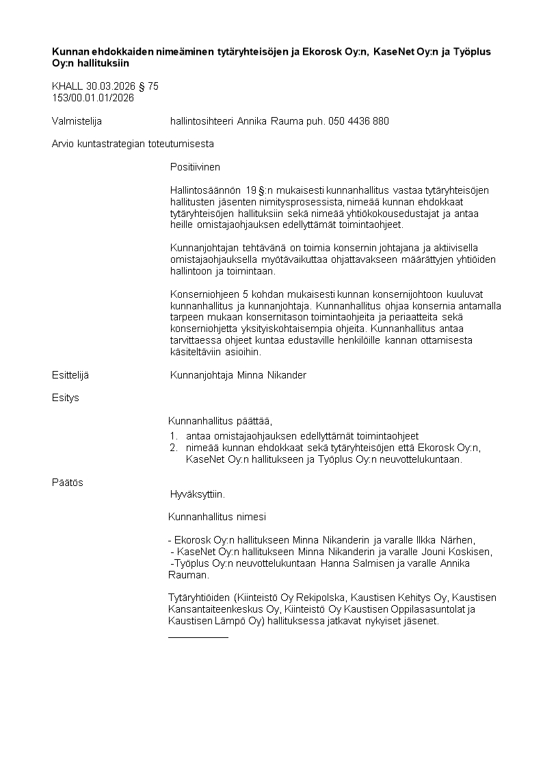 Pöytäkirja 30.03.2026/Pykälä 75