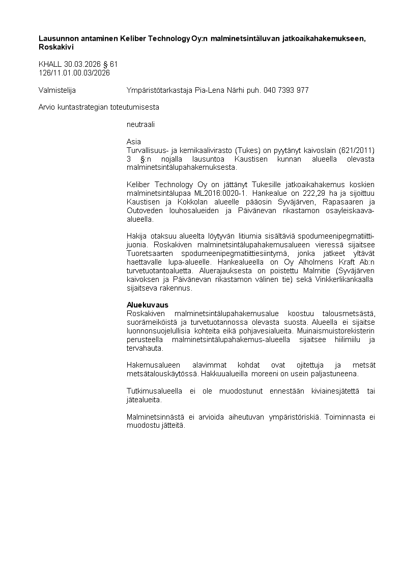 Pöytäkirja 30.03.2026/Pykälä 61
