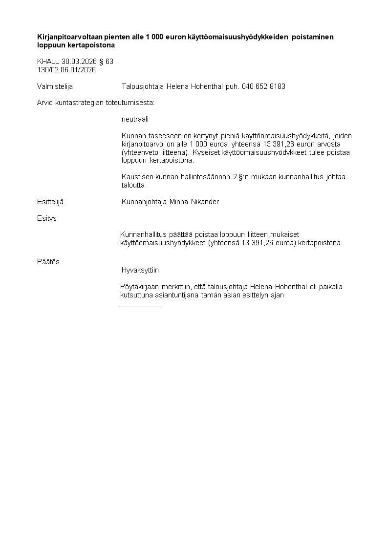 Pöytäkirja 30.03.2026/Pykälä 63
