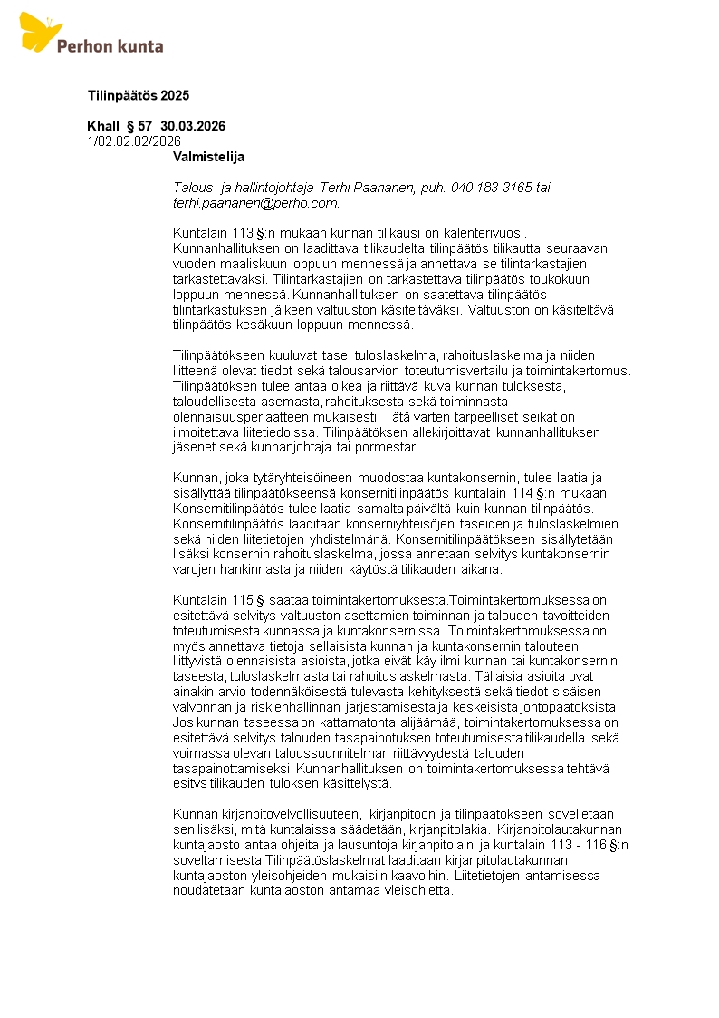 Pöytäkirja 30.03.2026/Pykälä 57