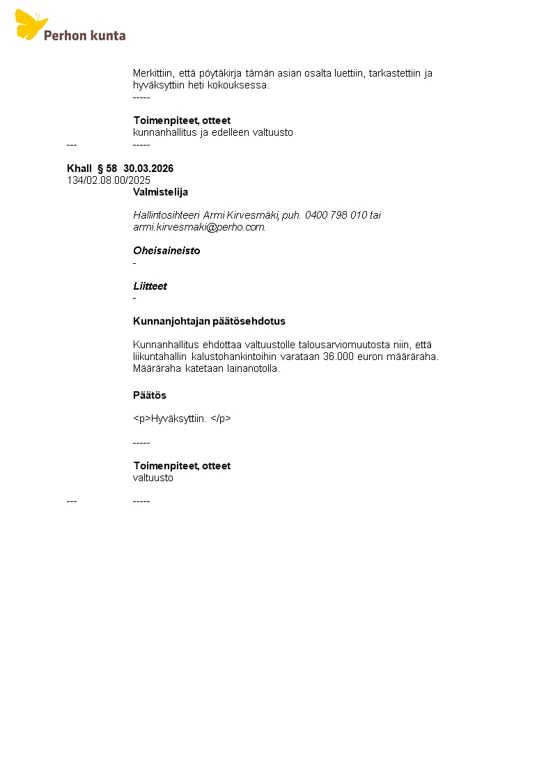 Pöytäkirja 30.03.2026/Pykälä 58