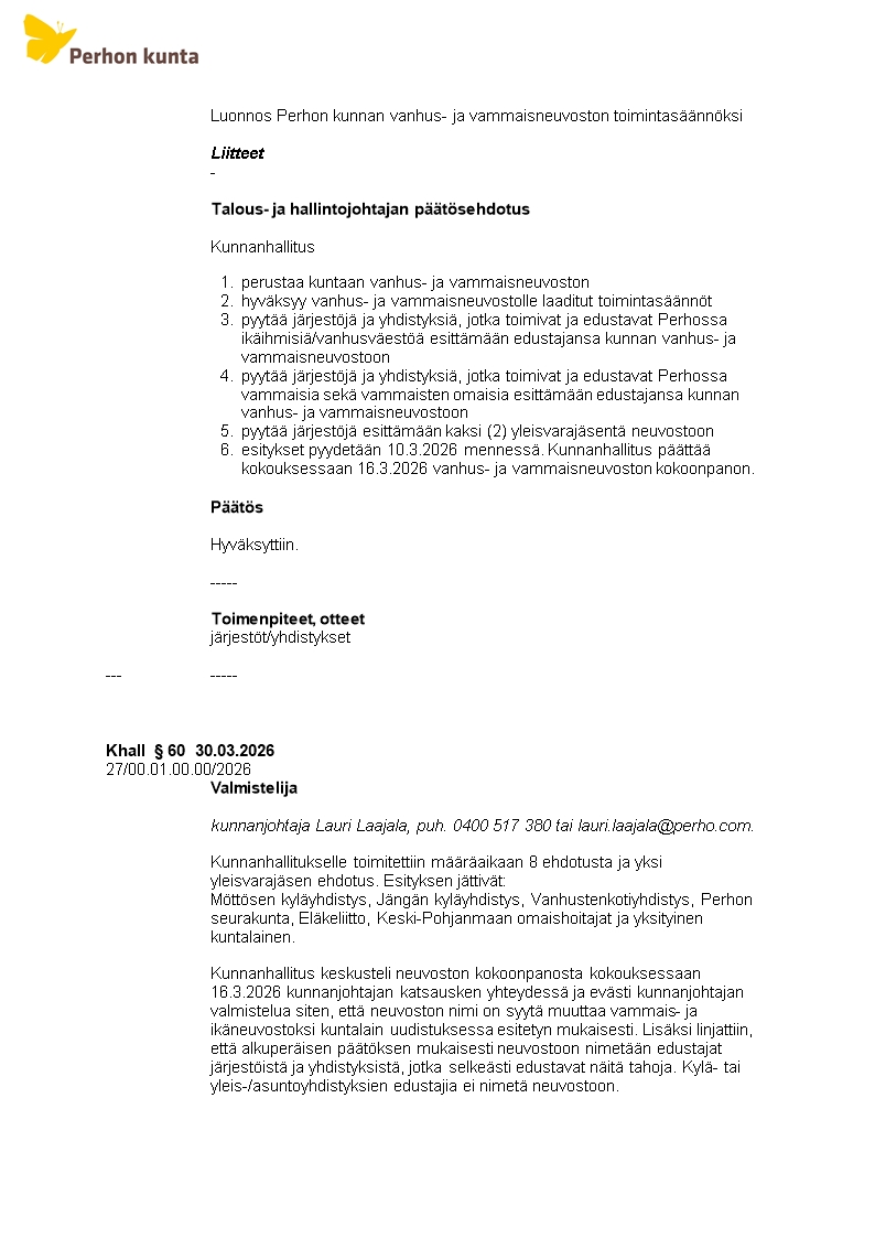 Pöytäkirja 30.03.2026/Pykälä 60